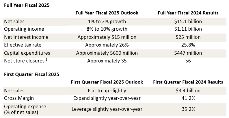 The company noted that fiscal year 2024 had 52 weeks versus 53 weeks in fiscal year 2023. Due to the 53rd week in fiscal 2023, in order to maintain consistency, comparable sales for the fourth quarter and fiscal year 2024 are compared to the 13 and 52 weeks, respectively, ended February 3, 2024. All other results for the fourth quarter and fiscal year 2024 include the impact from the loss of the additional week.